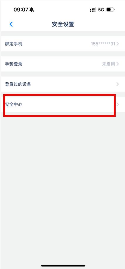 4、進(jìn)入安全設(shè)置頁(yè)面,點(diǎn)擊安全中心。