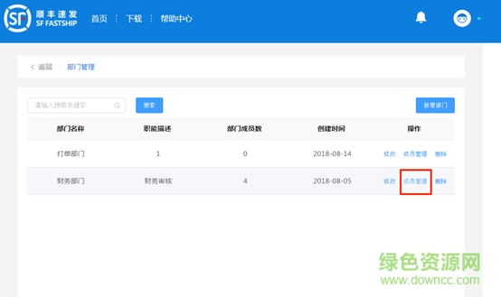 舉個(gè)例子,貴公司有財(cái)務(wù)部門、打單部門??稍诓块T管理頁(yè)面新增“財(cái)務(wù)部門”和“打單部門”,并設(shè)置該部門下的成員可用的寄件地址(防止員工在其他地方利用月結(jié)卡號(hào)寄件)和可用的月結(jié)卡號(hào)。