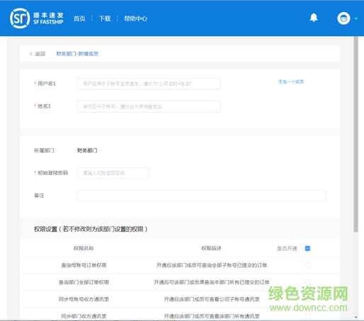 設(shè)置該成員的用戶名、姓名、初始密碼等,并設(shè)置該子賬號(hào)可用的權(quán)限