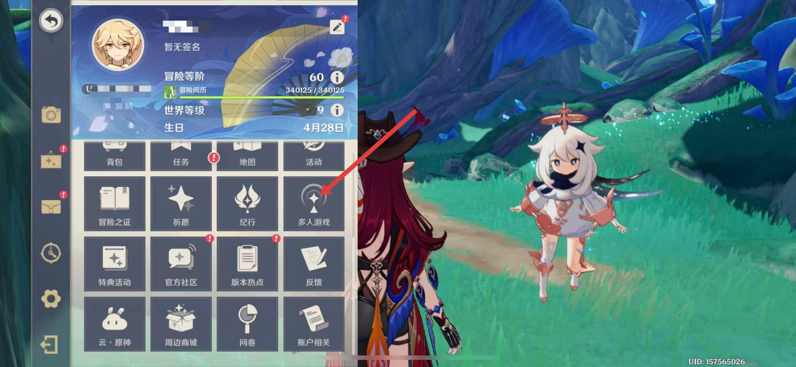 1、點(diǎn)擊游戲界面左上角的派蒙頭像,打開(kāi)游戲菜單。