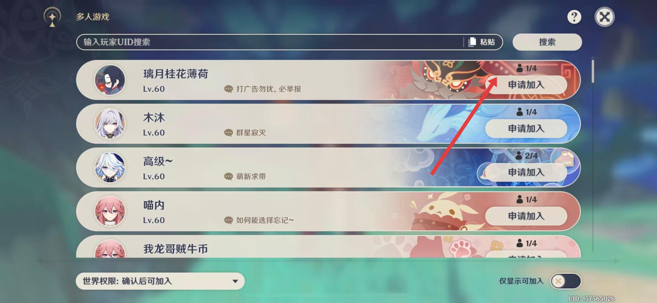 3、點(diǎn)擊其名字右側(cè)的申請(qǐng)加入,等待好友通過(guò)你的申請(qǐng),即可成功加入好友的世界。
