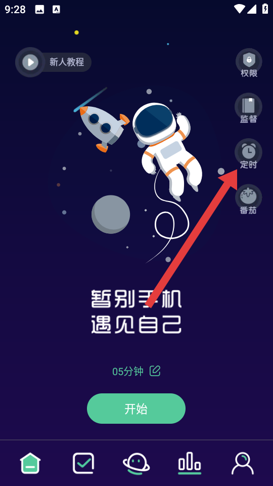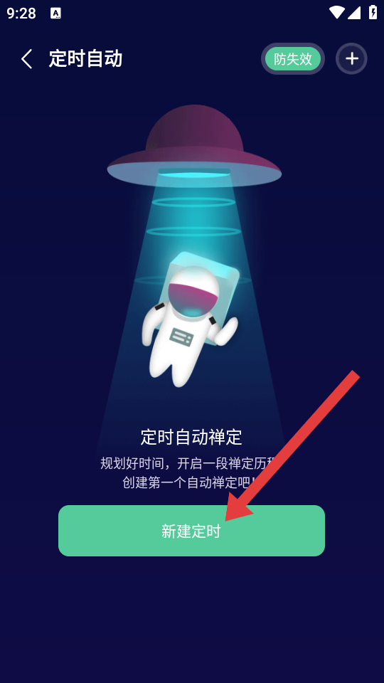 1、在禪定空間主界面,點擊右側(cè)的定時選項,進(jìn)入定時自動設(shè)置頁面。