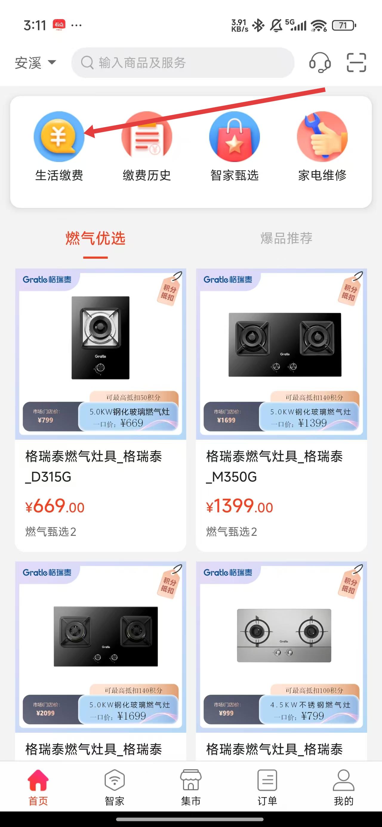 1、在e城e家首頁面中,點(diǎn)擊生活繳費(fèi)選項,進(jìn)入繳費(fèi)操作。