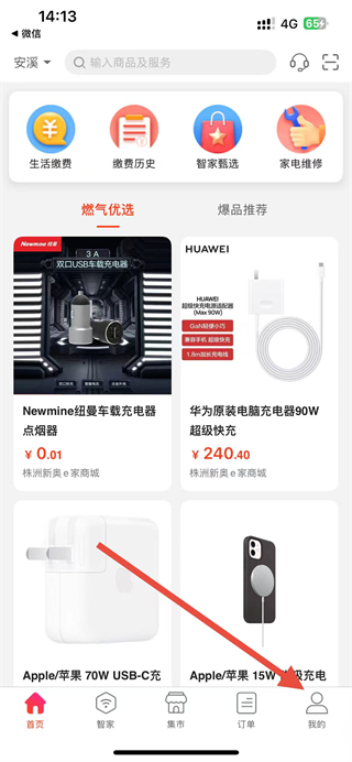 1、在e城e家app首頁點(diǎn)擊我的選項,進(jìn)入個人頁面。