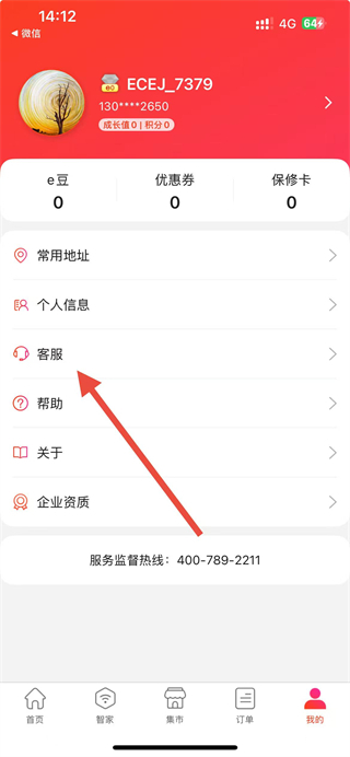 2、在個人頁面點(diǎn)擊客服選項,進(jìn)入在線客服頁面。