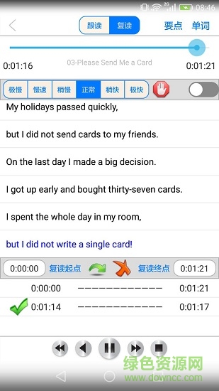 3.聽,自由選擇任意段落、任意語速,方便反復(fù)聽音揣摩。