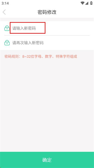 3、在密碼修改頁(yè)面,按要求設(shè)置新密碼。