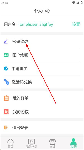 2、在個(gè)人中心頁(yè)面中,點(diǎn)擊密碼修改選項(xiàng)。