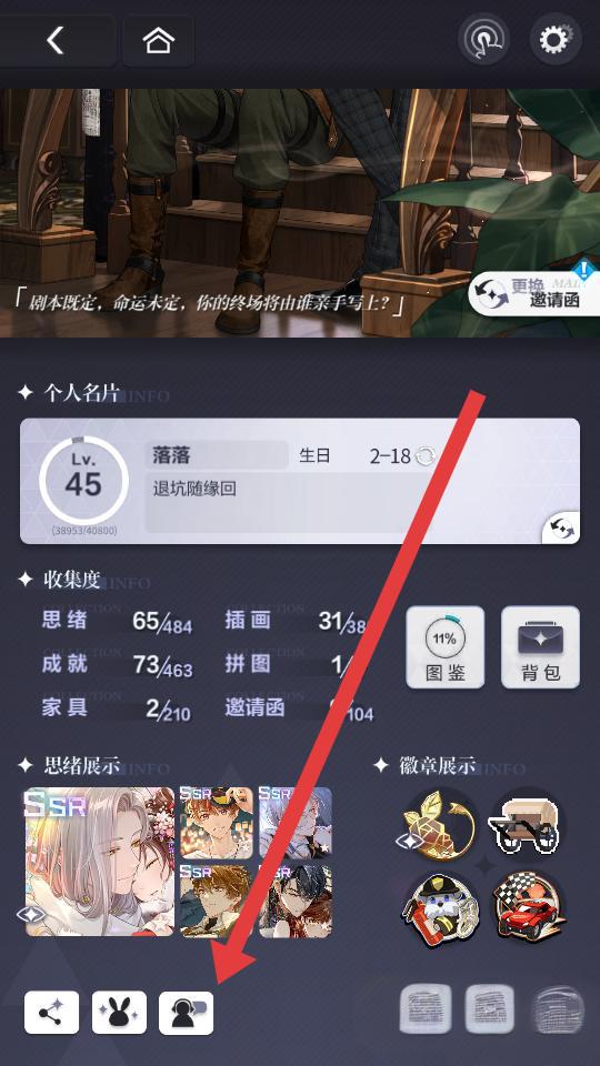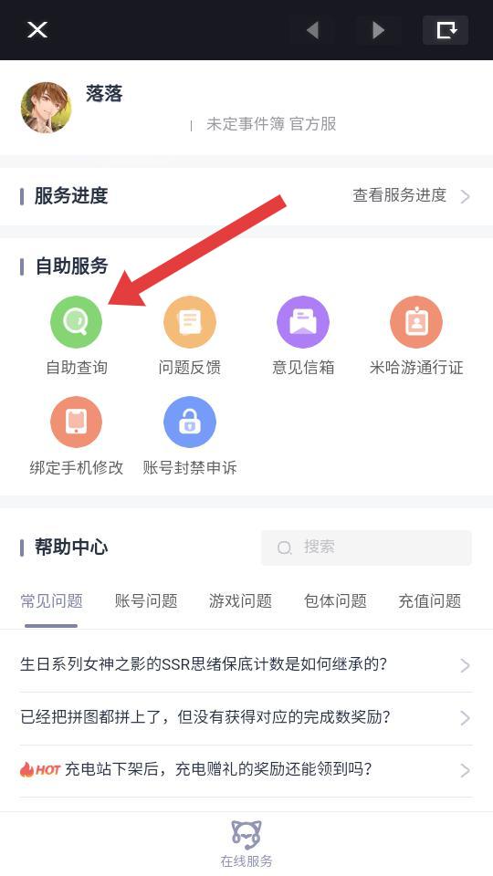 1、進入游戲點擊頭像,進入個人信息頁面底部,點擊小人形狀的圖標,可以進入自助服務的界面。
