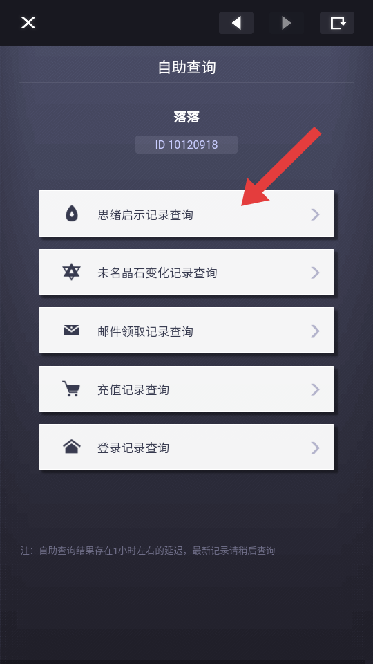3、在查詢的列表中,需要點擊思緒啟示記錄查詢的選項,然后就可以查看之前所有抽卡歷史的記錄。