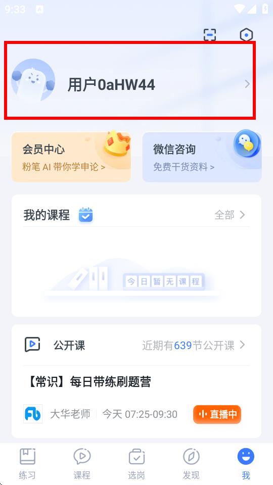 1、打開粉筆app,點(diǎn)擊頁面右下角的我選項(xiàng),進(jìn)入個(gè)人頁面。