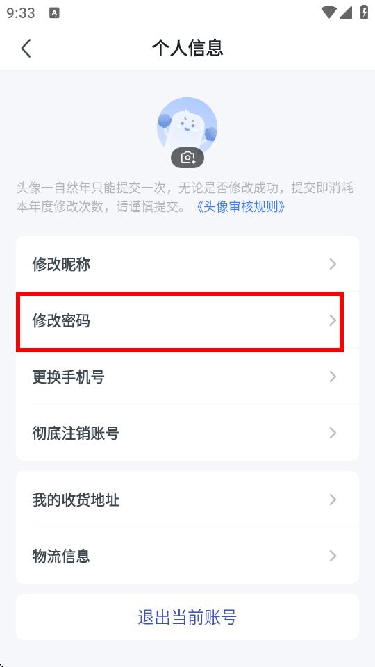 3、在個(gè)人信息界面,點(diǎn)擊修改密碼選項(xiàng),進(jìn)入密碼修改頁面。