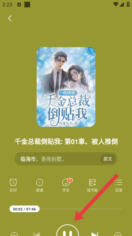 4、進(jìn)入聽書的界面后,需要點擊播放的按鈕,即可開始聽小說。
