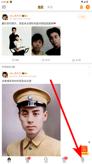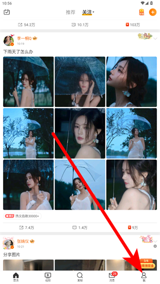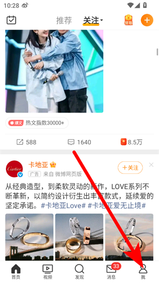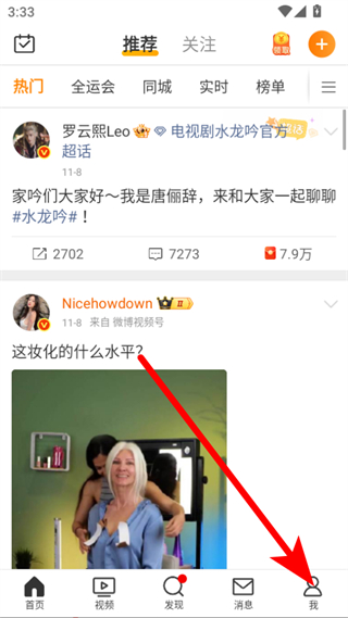 1、打開微博App,點(diǎn)擊底部導(dǎo)航欄的我選項,進(jìn)入個人頁面。