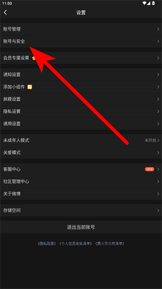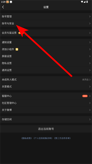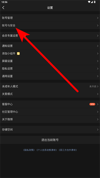 3.進(jìn)入設(shè)置界面后,點(diǎn)擊賬號與安全選項。