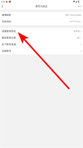 4、在賬號與安全頁面中,點(diǎn)擊雙重登錄驗證選項,按提示進(jìn)行設(shè)置。