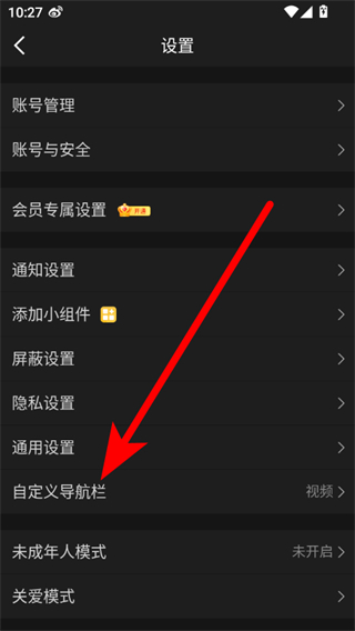 3、在設(shè)置頁面中找到自定義導(dǎo)航欄選項并點(diǎn)擊,進(jìn)入自定義導(dǎo)航欄頁面。