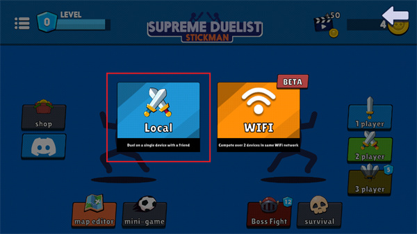 2、可以點(diǎn)擊屏幕之中的【local】按鈕,以進(jìn)行本地模式的戰(zhàn)斗;