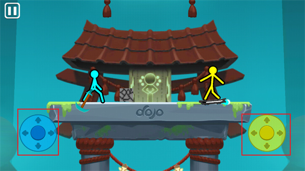 4、此時玩家將可以看見屏幕下方有兩個不同的圓形按鈕,可以和自己的朋友一人控制一個按鈕;