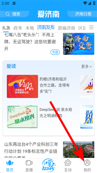 1、在愛濟(jì)南app首頁,點(diǎn)擊右下角我的選項(xiàng),進(jìn)入個(gè)人頁面。