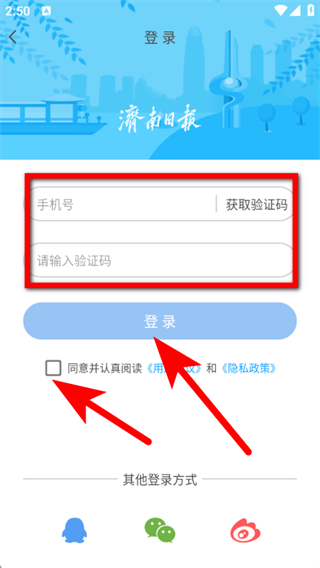 3、在登錄頁面,輸入信息,勾選同意,點(diǎn)擊登錄按鈕,即可完成登錄操作。
