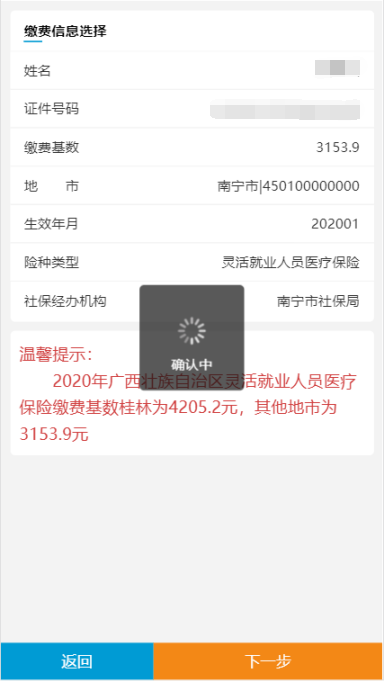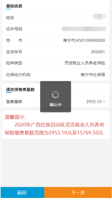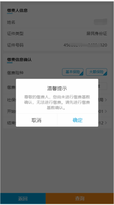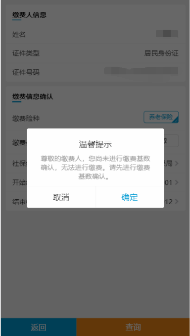 4 如果沒有進行繳費基數(shù)確認,根據(jù)提示點擊【確認】,進行繳費基數(shù)確認