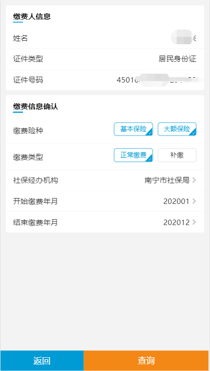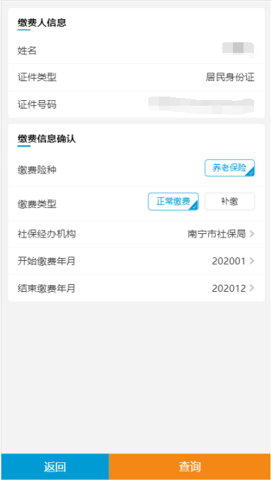 3 選擇【繳費類型】、【開始繳費年月】、【結(jié)束繳費年月】,點擊【查詢】
