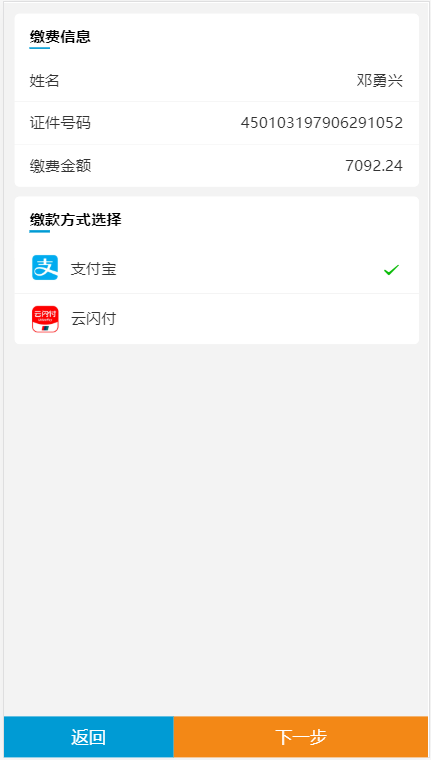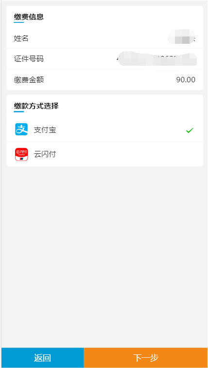 9 選擇【支付方式】,點擊【下一步】,進行繳費