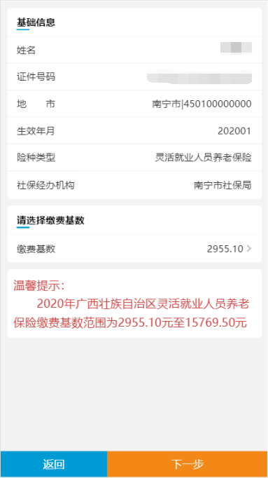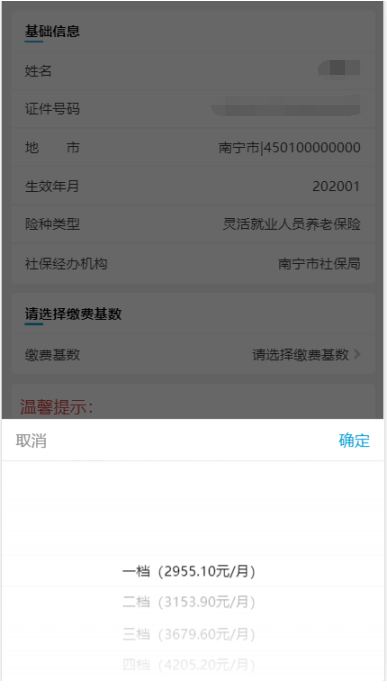 5 選擇【繳費基數(shù)檔次】,進行確認