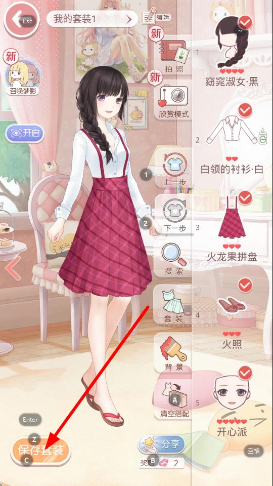 3、套裝搭配完成后,點(diǎn)擊左下角保存套裝按鈕,將搭配好的套裝保存,方便后續(xù)直接調(diào)用該套裝進(jìn)行展示或參與游戲內(nèi)容。