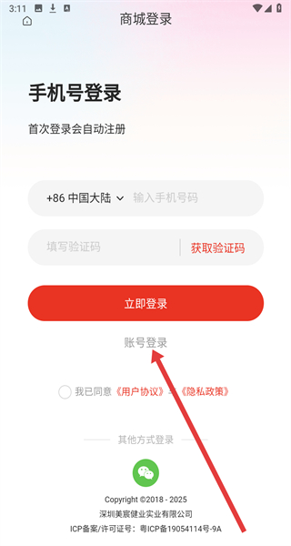 3、可以在手機(jī)號(hào)登錄頁(yè)面中勾選我已同意《用戶(hù)協(xié)議》與《隱私政策》再點(diǎn)擊賬號(hào)登錄切換登錄方式。