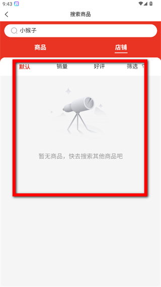 4、若店鋪無(wú)商品則會(huì)顯示暫無(wú)商品提示,可嘗試搜索其他店鋪。