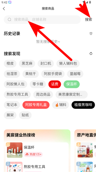 1、在美宸健業(yè)主頁(yè),點(diǎn)擊頂部搜索框,進(jìn)入搜索商品頁(yè)面。