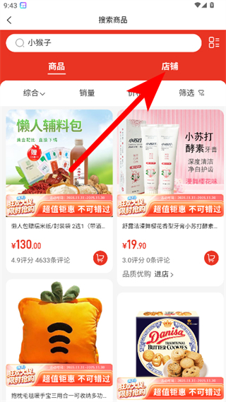 3、在搜索結(jié)果頁(yè)面,點(diǎn)擊店鋪選項(xiàng),即可查看對(duì)應(yīng)店鋪相關(guān)內(nèi)容。