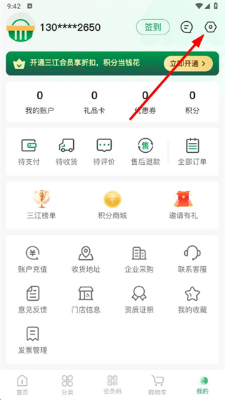 1、打開三江云菜app,點擊底部導(dǎo)航欄中的我的選項,進(jìn)入相關(guān)頁面。