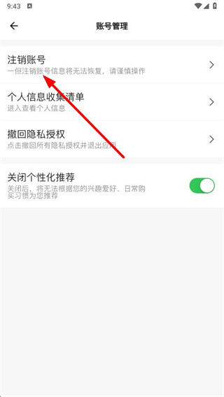 4、在賬號管理頁面,點擊注銷賬號選項,進(jìn)入注銷賬號確認(rèn)頁面。