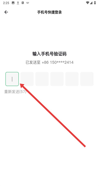 4、進(jìn)入到快捷登錄頁,輸入收到的驗證碼即可完成登錄。