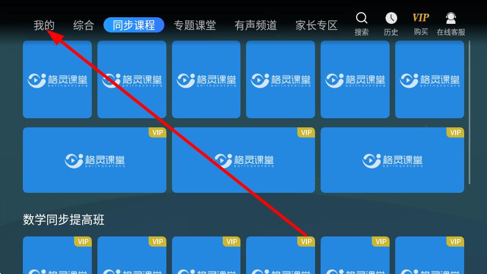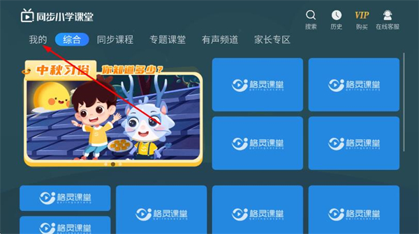 1、打開(kāi)同步小學(xué)課堂,點(diǎn)擊頂部導(dǎo)航欄我的選項(xiàng)。