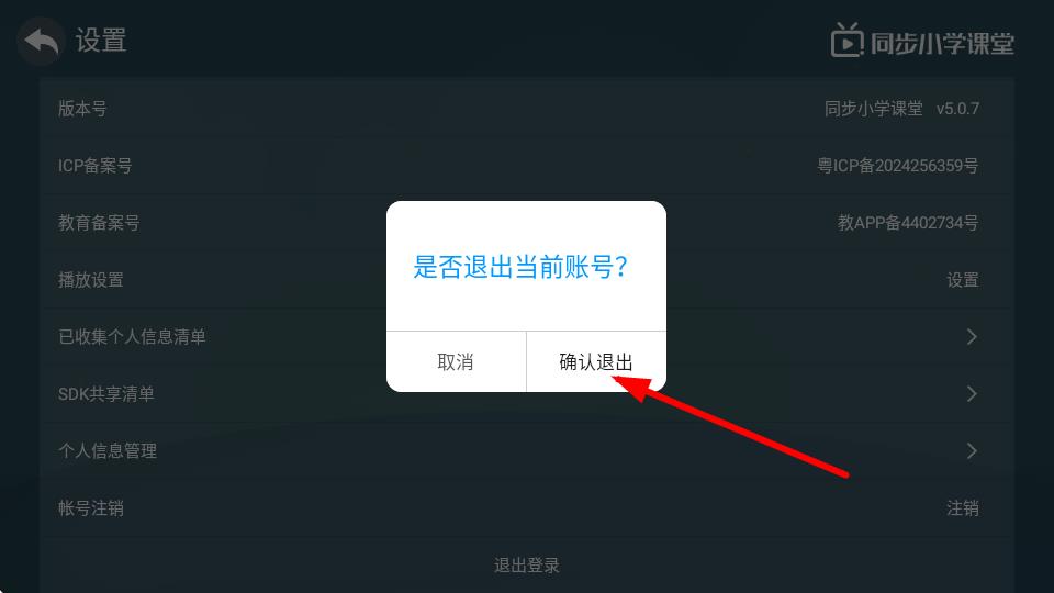 4、此時(shí)會(huì)彈出是否退出當(dāng)前賬號(hào)?的提示框,點(diǎn)擊確認(rèn)退出按鈕,即可完成退出登錄操作。