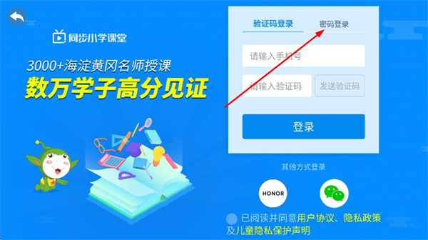 3、在登錄頁(yè)面中,選擇并點(diǎn)擊上方的密碼登錄選項(xiàng)。