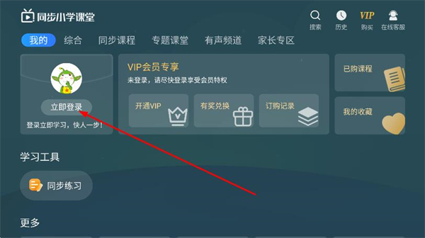 1、打開(kāi)同步小學(xué)課堂APP進(jìn)入主界面,點(diǎn)擊左上方我的選項(xiàng)。