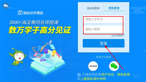 4、填寫手機(jī)號(hào)和密碼,點(diǎn)擊登錄即可完成賬號(hào)登錄。