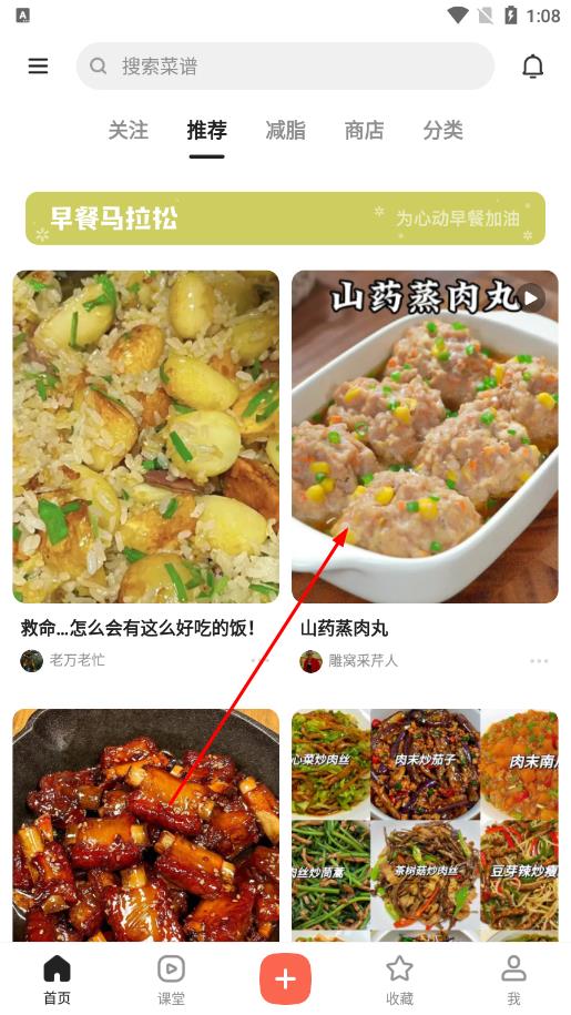 1、打開下廚房App,在推薦等頁面找到嘗試制作的菜譜,進入菜譜詳情頁。