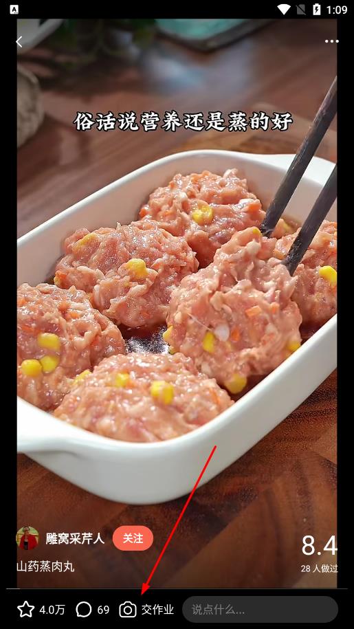 2、在菜譜詳情頁面底部,點擊交作業(yè)按鈕。