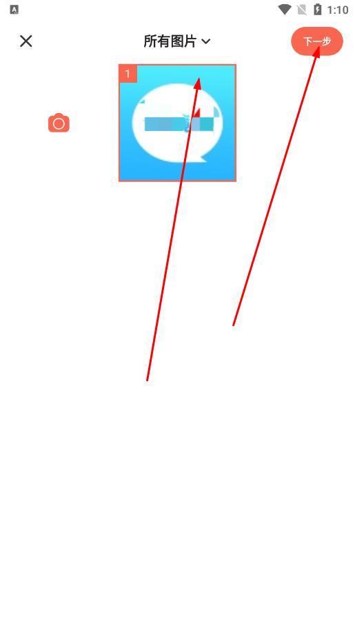 3、進入圖片選擇界面,從相冊中選擇你制作菜品的照片,選好后點擊下一步。