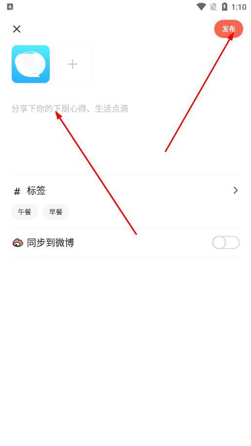 4、可以在輸入框中分享下廚心得、制作過程中的趣事等,點擊發(fā)布按鈕即可。