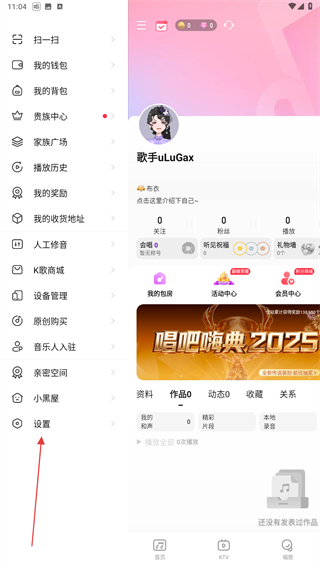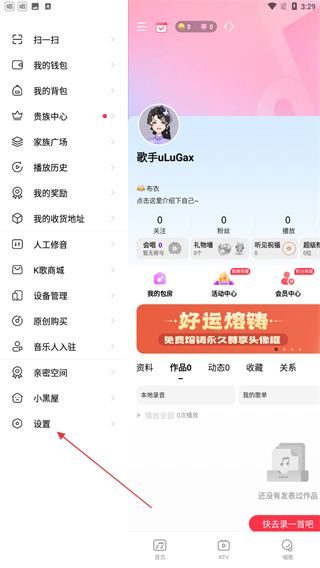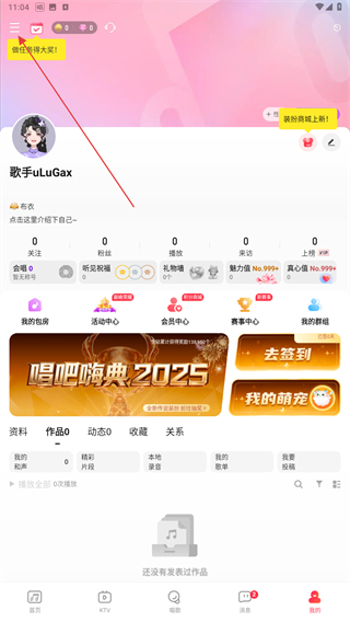 1、啟動唱吧k歌的應用,在我的頁面內(nèi)點擊左上的圖標。