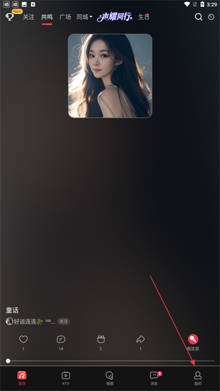 1、啟動唱吧k歌APP,進入時點擊導航欄中我的。
