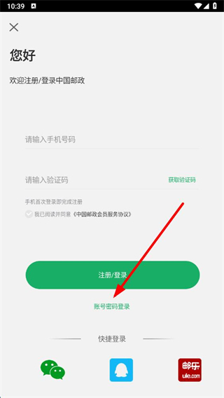 3、進入登錄頁面后,點擊賬號密碼登錄選項。