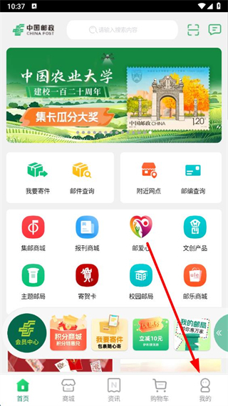 1、打開中國郵政APP,點擊右下角我的進入個人頁面。